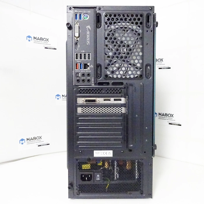 | PORTS E/S | Arrière : 4x USB2.0 – 2x USB3.0 – 1x USB-c 3.2 Gen1 – 1x USB 3.2 Gen 2 – 1x HDMI – 1x DVI-D – 5x jack 3,5 mm – 1x PS/2 Mix – 1x Optique S/PDIF |
